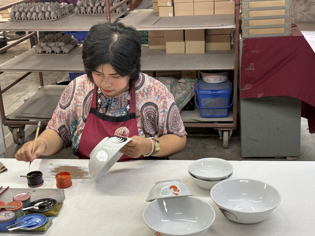 ตามรอยตำนาน “ชามตราไก่” กิจกรรมที่น่าสนใจไม่แพ้กันคือการเยี่ยมชม โรงงานเซรามิกธนบดีเดคอร์เซรามิค จำกัด (ผู้ผลิตถ้วยตราไก่) ที่มีอายุยาวนานกว่า 60 ปี ผู้ก่อตั้งคือ อาปาอี้ (ซิมหยู แซ่ฉิน) ปัจจุบันดูแลกิจการโดยทายาทรุ่นที่สอง คุณยุพิน และคุณพนาสิน ธนบดีสกุล คณะฯ ได้รับความรู้เกี่ยวกับภูมิปัญญาและวิวัฒนาการของการทำ “ถ้วยตราไก่” ตั้งแต่อดีตจนถึงปัจจุบัน ที่ถือเป็นสัญลักษณ์สำคัญของจังหวัดลำปาง