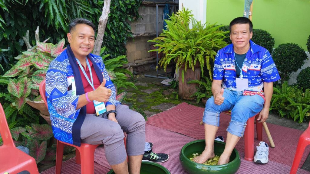 สถานีสุดท้ายของทริป Muslim-Friendly Tourism คือการเข้าเยี่ยมชม วิสาหกิจชุมชน “กลุ่มสมุนไพรลูกประคบเซรามิก” บ้านศาลาบัวบก อ.เกาะคา ซึ่งเป็นหมู่บ้านที่มีชื่อเสียงด้านการทำเซรามิก คณะฯ ได้ฟังความเป็นมา และร่วมกิจกรรมผ่อนคลายด้วยการ ประคบเท้าด้วยลูกเซรามิกสมุนไพร เป็นการผสมผสานภูมิปัญญาการทำเซรามิกเข้ากับการดูแลสุขภาพอย่างลงตัว