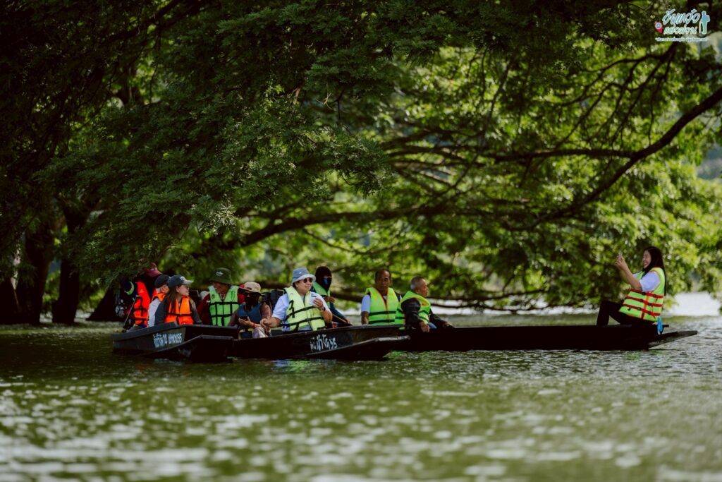 วันแรก เริ่มต้นที่การล่องเรือชมความงามของต้นฉำฉากลางน้ำ ในตำบลแม่ปั๋ง ที่นี่ถือเป็นจุดเช็คอินยอดฮิตแห่งใหม่ของพร้าว กับวิวต้นฉำฉาขนาดใหญ่ตั้งเด่นอยู่กลางน้ำในทะเลสาบเขื่อนแม่งัด เป็นภาพที่สวยงามสุด