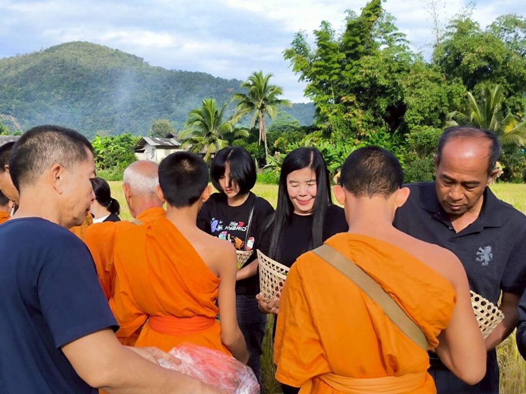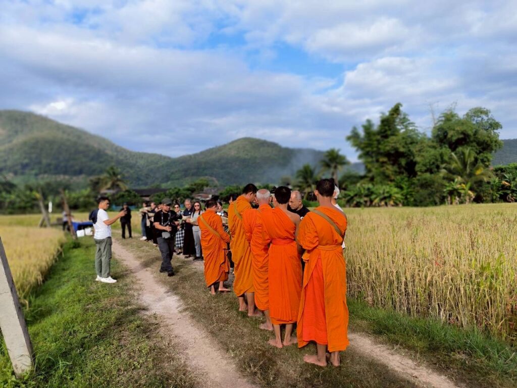 วันที่สอง ตักบาตรยามเช้ากับวิวทุ่งนาเขียวขจี พร้อมชมความสวยงามของพระอาทิตย์ขึ้น พร้อมเที่ยวชมบรรยากาศของหมู่บ้านยามเช้า
