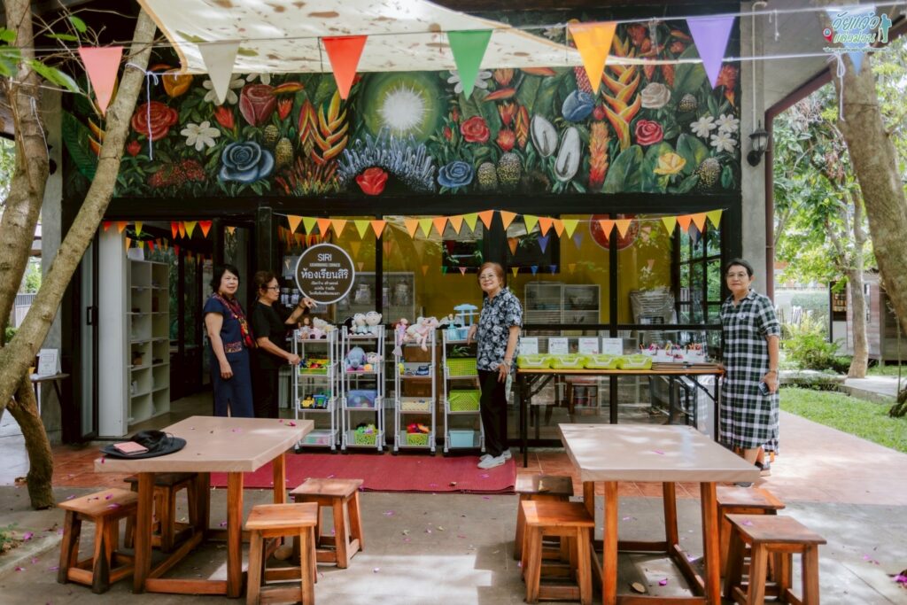รับประทานอาหารกลางวันกันที่ สิริเมืองพร้าว ร้านสวยบรรยากาศน่ารักๆ ที่ตกแต่งด้วยบ้านไม้เก่า กับอาหารพื้นถิ่นรสชาติดี ผลิตภัณฑ์จากกุหลาบ ชา กาแฟ ขนมโฮมเมด และลานศิลปะที่สามารถเข้าร่วมได้ทั้งเด็ก และผู้ใหญ่