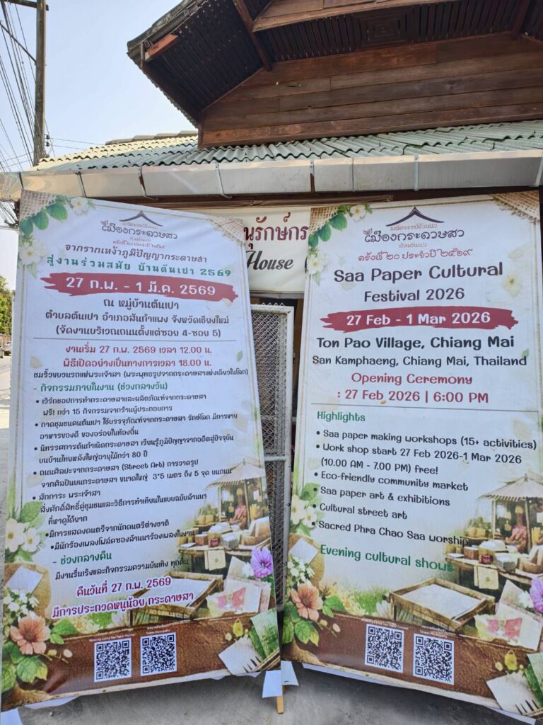 เทศบาลเมืองต้นเปาและภาคีเครือข่าย เชิญเที่ยวงาน “มหัศจรรย์ล้านนา เมืองกระดาษสาบ้านต้นเปา ครั้งที่ 20” จากรากเหง้าภูมิปัญญากระดาษสา สู่งานร่วมสมัยบ้านต้นเปา27 ก.พ. – 1 มี.ค. 2569 ณ หมู่บ้านต้นเปา ต.ต้นเปา อ.สันกำแพง จ.เชียงใหม่